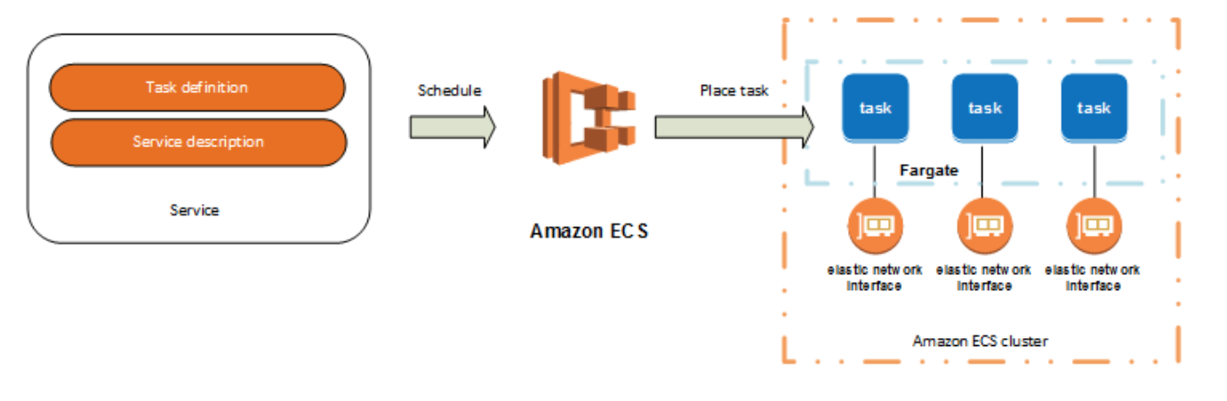 Được gọi tắt là ECS là một service quản lý container có tính scale cao và nhanh. Dễ dàng run, stop, hay quản lý docker container ở trong một cluster. Bạn có thể host một serverless infrastructure bằng cách chạy service hay task sử dụng Fragate launch type.