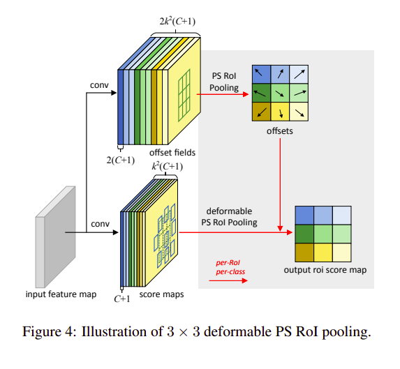 PS RoI pooling có hai điểm khác biệt so với Deformable RoI Pooling: