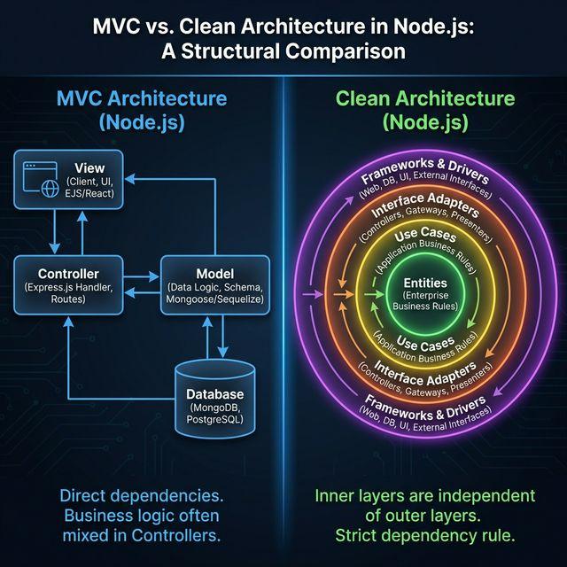 So sánh chi tiết MVC và Clean Architecture trong Node.js – Khi nào nên dùng và mục đích sử dụng