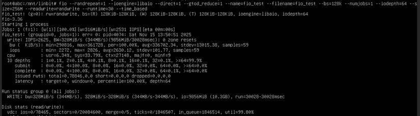 LINSTOR cho kết quả BW=344MB/s IOPS=2625