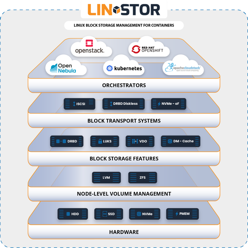 LINSTOR được thiết kế để quản lý thiết bị lưu trữ block trong các cụm máy chủ Linux quy mô lớn. Giải pháp này thường được sử dụng để cung cấp lưu trữ block trên Linux với tính bền vững (persistent) và khả dụng cao (high availability) cho môi trường cloud-native và hypervisor.