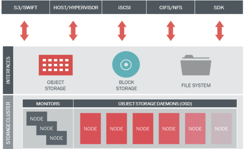 Ceph hỗ trợ cả 3 giao thức phổ biến của Storage là S3 Object Storage Compatible (RadosGW), Block Storage (RBD) và File System (CephFS). Ngày nay, Ceph hầu như khá phổ biến trong các hệ thống Cloud, Private Cloud, S3 trên toàn thế giới bởi tính ổn định, độ an toàn tin cậy dữ liệu cao được chứng mình qua thời gian hơn một thập kỷ phát triển.
