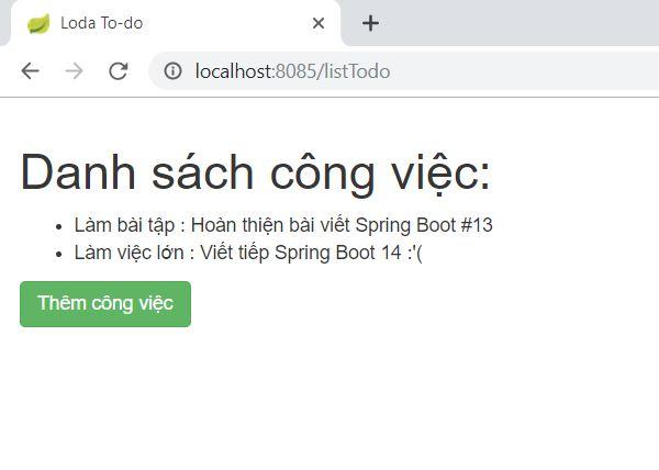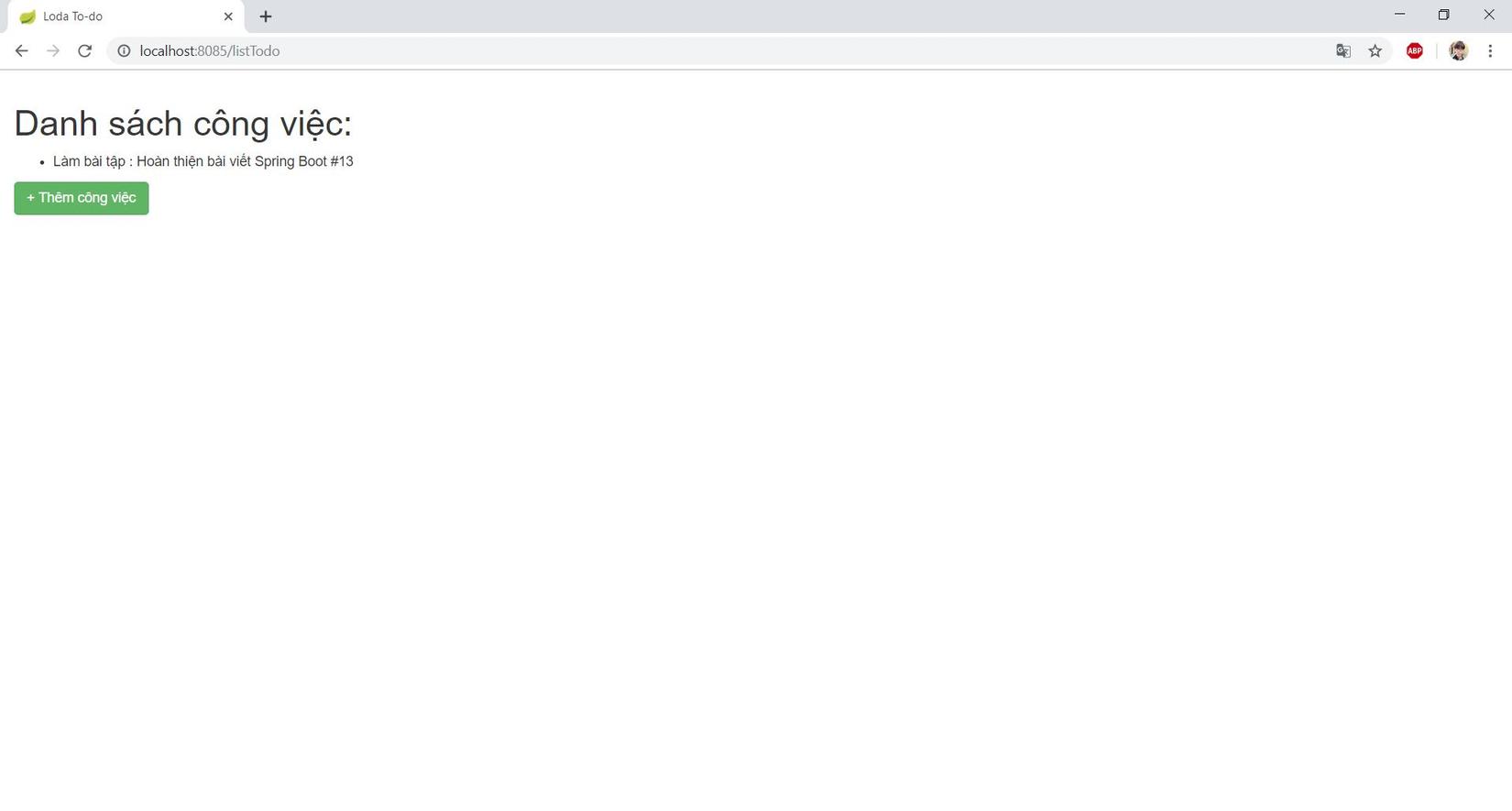 Vì chúng ta đã insert 1 bản ghi vào Database từ trước, nên ở đây nó hiện ra 1 việc cần làm.