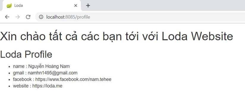 Click vào Button Loda Profile. Trình duyệt sẽ đi tới đại chỉ http://localhost:8085/profile