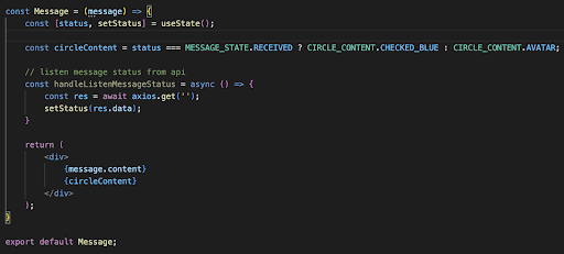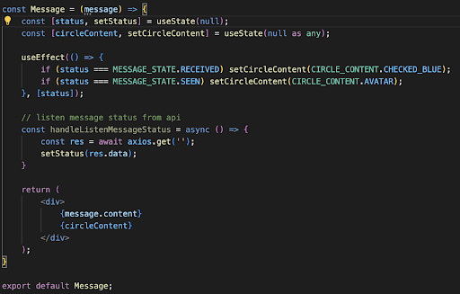 Nhưng tôi đã nhận ra: Phần nội dung của icon hình tròn phụ thuộc vào State trạng thái của tin nhắn, vậy nên nó không cần phải sử dụng 1 State mới để handle. Thực chất, chúng ta có thể xử lý như sau:
