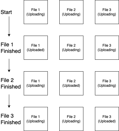 Khi tôi implement Upload function, tôi đã gặp một vấn đề phức tạp để handle status của các file upload. Tôi có 3 files cùng upload cùng một lúc và mỗi khi upload xong (thành công hoặc thất bại), tôi sẽ update status của các file này và đoạn code tôi xử lý sau khi upload như dưới đây: