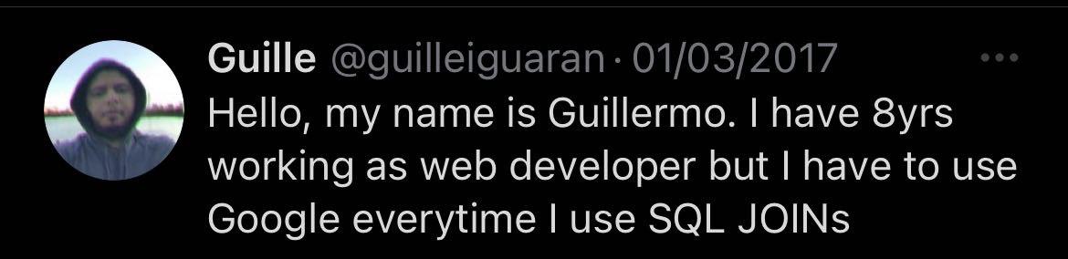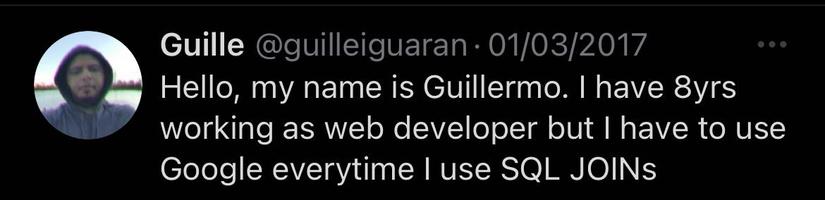 Web developer với 8 năm kinh nghiệm, mỗi lần dùng SQL joins lại phải google 😂😂😂