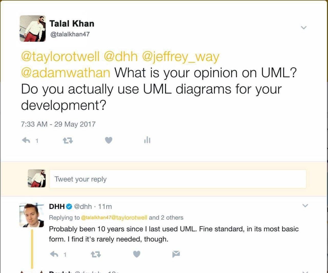 Còn đây là quan điểm của David về UML, một thứ mà ai học về IT cũng phải trải qua. Mình cũng khá vật vã với nó hồi làm đồ án, mà giờ đi làm 4 năm rồi chưa động vào bao giờ 😂