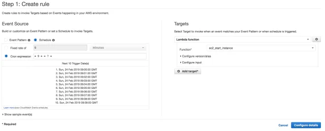 - Choose Schedule under Event Source.