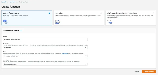 Step 2 : Create Lambda function