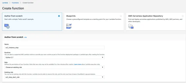 - Name: Give your Lambda function any name