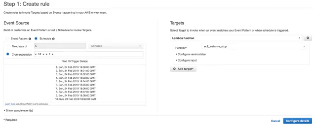 Một trong những thách thức lớn trong việc thực hiện điều này là đối với những Dev cần làm việc muộn và anh ta muốn run instance của mình quá 6h tối và những bản vá lỗi gấp , làm việc lúc cuối tuần ? Một giải pháp phổ biến tôi đưa ra là chỉ định manual các danh sách trong Python Code (Lamda function)