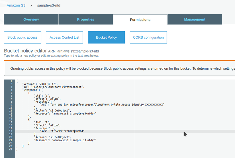 "Resource": "arn:aws:s3:::sample-s3-ntd/*"