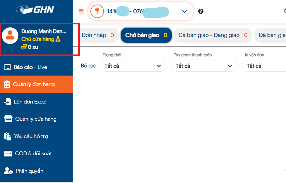 Cách lấy shop_id sẽ nằm trong màn Quản lý cửa hàng.