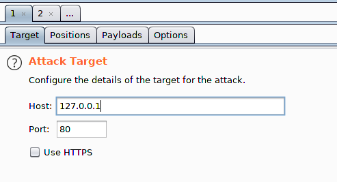 - Use HTTPS: Sử dụng HTTPS hay là không. Cách dễ nhất để cấu hình các chi tiết này là sử dụng HTTP history nằm trong tab Proxy hoặc bất cứ nơi nào trong Burp rồi gửi đến Burp Intruder. Điều này sẽ gửi yêu cầu để Burp Intruder mở 1 tab mới trong Intruder và sẽ được tự động điền vào Target và Positions.