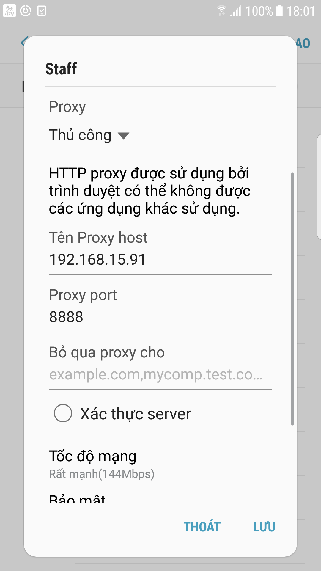 Proxy portbạn nhập vào port mà bạn đã thiết lập ở bướcProxy Settings, do trước đó mình dùng8888nên ở đây nhập cổng đó vào.