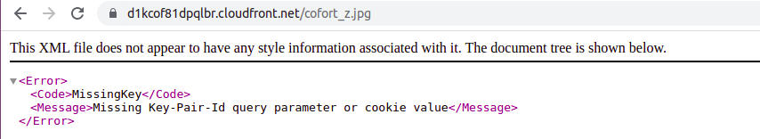 Sử dụng CloudFront domain để thử request tới file chúng ta đã upload trong bucket. Chúng ta sẽ gặp lỗi như sau: