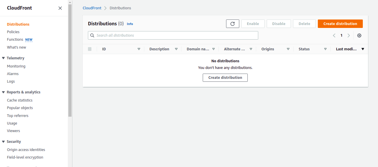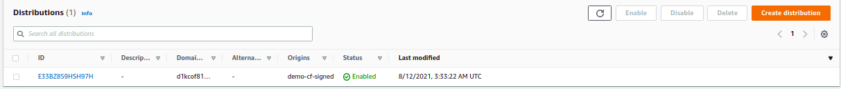 Sau khi tạo chúng ta có được một Distribution domain name như sau