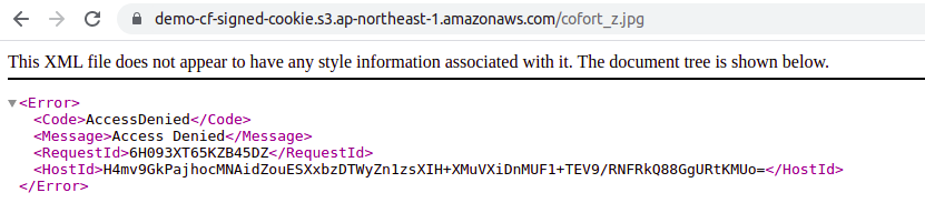 Bây giờ nếu bạn cố gắng truy cập tệp trực tiếp từ S3, bạn sẽ gặp lỗi AccessDenied sau