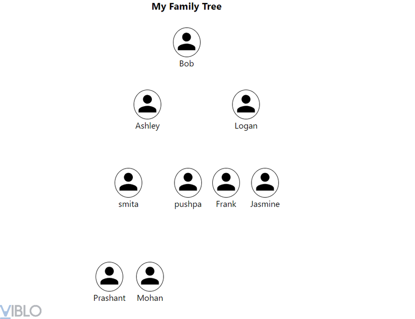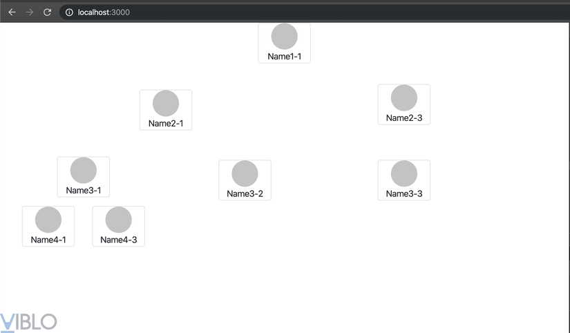 Đầu tiên tạo 1 component Person, hiển thị thông tin, ảnh của người dùng đó. Sau đó, từ data sẵn có, duyệt qua từng từng mảng ở từng lớp con đến hết chiều sâu của cây, việc này làm cho hướng giải quyết trở nên phức tạp và tốn thời gian hơn.