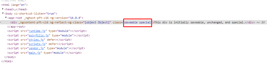 <div [ngClass]="currentClasses">This div is initially saveable, unchanged, and special.</div>