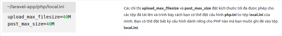 Để cấu hình PHP, bạn sẽ tạo tệp local.ini bên trong thư mục ~/laravel-app/php. Đây là tệp mà bạn đã gắn kết với /usr/local/etc/php/conf.d/local.ini bên trong vùng chứa trong phần 2. Tạo tệp này sẽ cho phép bạn ghi đè tệpphp.inimặc định mà PHP đọc khi nó bắt đầu khởi động: