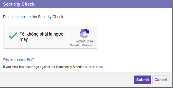 Sau đó là bước Security Check bạn không phải người máy, bước này thì các bạn phải tự làm rồi Submit thôi (yaoming)