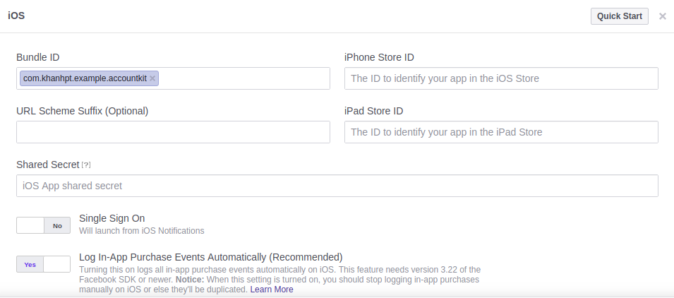 Đoạn code trên mình có config mã số điện thoại và mã nước của VietNam, ngoài ra các bạn có thể xem thêm các config của AccountKit tại đây