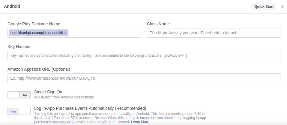 Các bạn có thể truy cập https://github.com/underscopeio/react-native-facebook-account-kit để xem cách cài đặt thư viện này nhé. Trong phạm vi bài viết mình sẽ hướng dẫn cụ thể trường hợp thiết bị Android, còn thiết bị iOS thì các bạn có thể làm theo hướng dẫn nhé.
