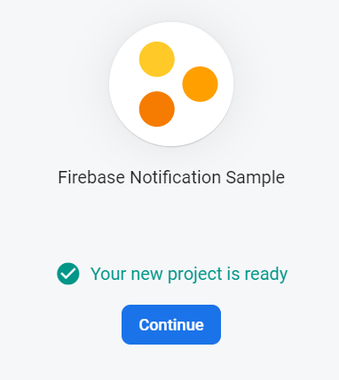 Sau khi tạo xong hệ thống sẽ báo như hình bên dưới, chúng ta nhấn nút “Continue” để vào giao diện quản lý chính của Firebase cho ứng dụng mới tạo.