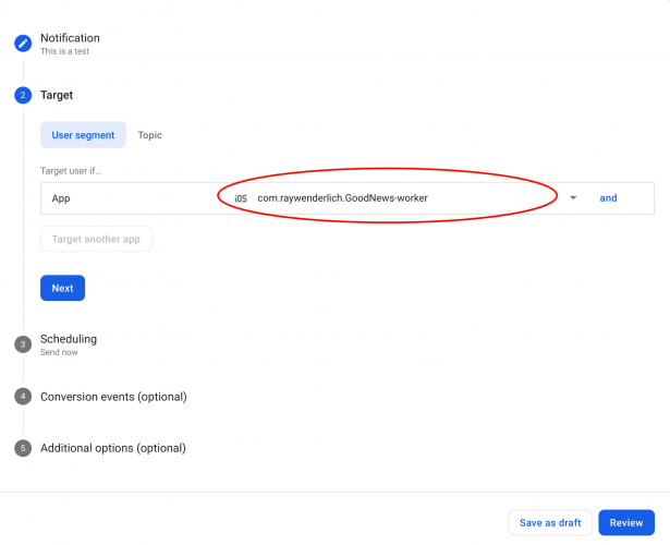 Điều này sẽ target ứng dụng cụ thể của bạn khi sử dụng bảng điều khiển Cloud Message. Cuối cùng, chọn Xem lại và sau đó Xuất bản. Trên thiết bị của mình, bạn sẽ thấy thông báo sau:
