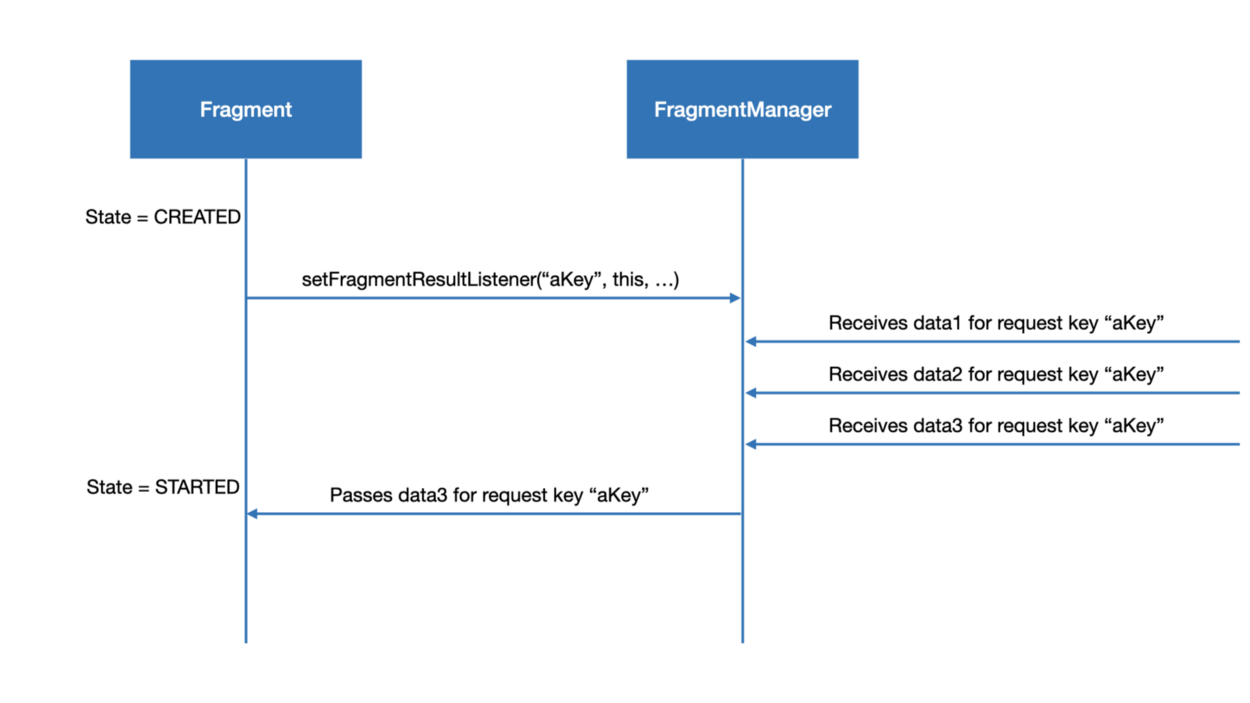 Sau đó, FragmentA sẽ nhận được kết quả nếu nó ở trạng thái STARTED. Nếu có nhiều dữ liệu được chuyển đến FragmentA trước khi nó đạt đến trạng thái STARTED thì nó sẽ chỉ nhận được giá trị mới nhất nếu cuối cùng nó đạt đến trạng thái STARTED.