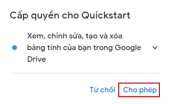 Lúc này chúng ta đã có các thông tin chứng thực cần thiết để sử dụng được các quyền với các trang tính trong phạm vi quyền hạn của account chúng ta