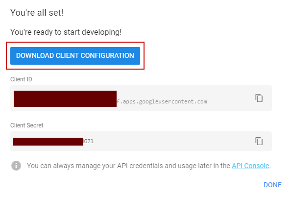 Việc đầu tiên là phải bật chức năng này trong account của bạn lên và download file credentials.json này về
