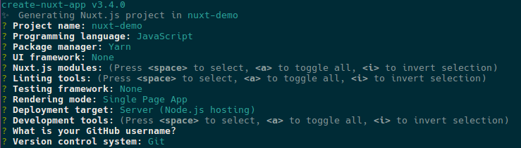 yarn create nuxt-app nuxt-demo