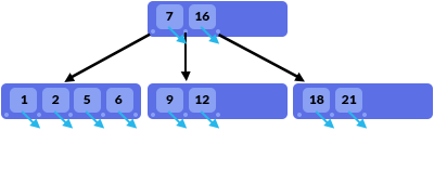 thì cấu trúc B-tree index cũng tương tự như vậy, tuy nhiên một node có thể có nhiều hơn 1 value, kích thước của node được xác định bởi bậc (order) trong BTree là một constant định nghĩa trước. Các value trong 1 node cũng được sắp xếp theo thứ tự tăng dần.Child nodes sẽ nằm bên trái value X khi values của node nhỏ hơn X, ngược lại sẽ nằm bên phải nếu có values lớn hơn.