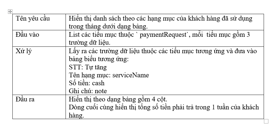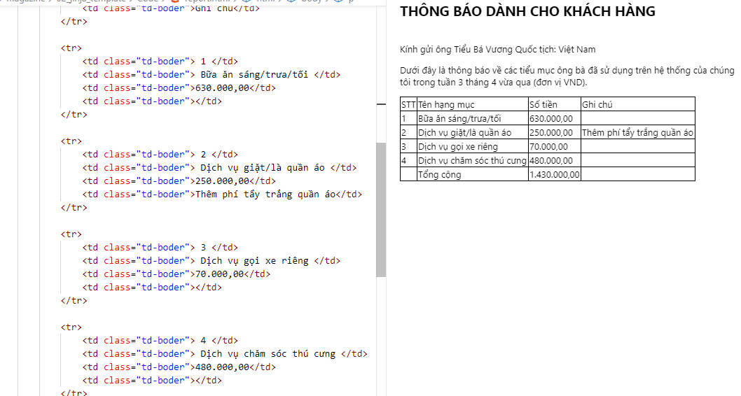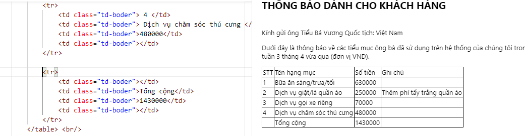 - Dòng cuối cùng của bảng chứa tổng số tiền.