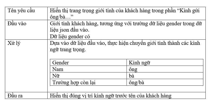 - Nếu giới tính là Nam, hiển thị là “Ông”, giới tính Nữ hiển thị là “Bà”, không có dữ liệu giới tính thì bỏ trống.