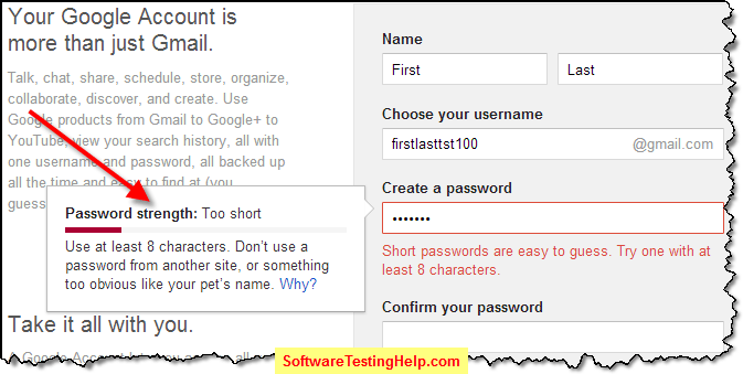 #2) Một số trang Web đưa ra cảnh báo để chỉ ra độ mạnh/yếu của mật khẩu của người dùng. Nó cũng hướng dẫn cho người dùng sử dụng 1 mật khẩu đủ mạnh bằng việc mật khẩu phải chứa cả ký tự và số.