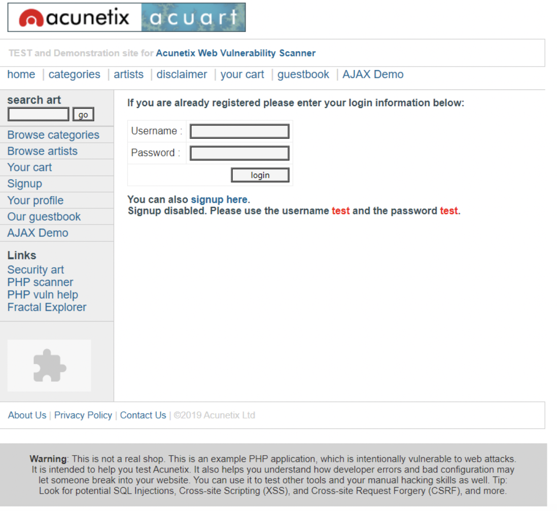 Trong demo này, chúng ta sẽ thử tìm cách lấy được thông tin đăng nhập vào trang Web: http://testphp.vulnweb.com/ (Đây là trang Web demo nên các bạn có thể thử thoải mái nhé)