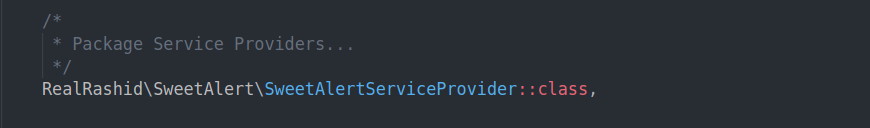 Sau khi cài đặt gói Sweet-alert , đăng ký gói trong Service Provider: