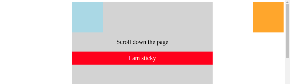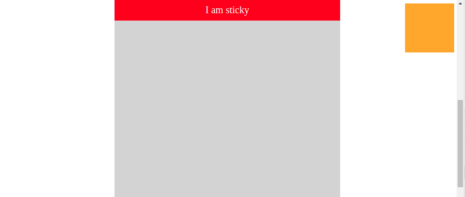 Xem cụ thể cuộn trang tại đây. Như chúng ra có thể thấy, việc cuộn trang cũng không ảnh hưởng đến vị trí cố định của hộp màu cam. Nó không còn liên quan đến phần tử cha (vùng chứa) của nó nữa.
