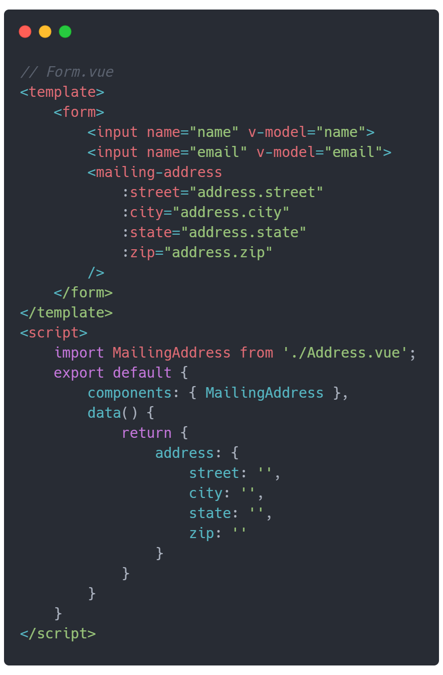 Nếu nó thêm một cấp nữa thì sao? Ví dụ bên trong Address.vue chúng ta nhét thêm một component cháu nội của Form nữa