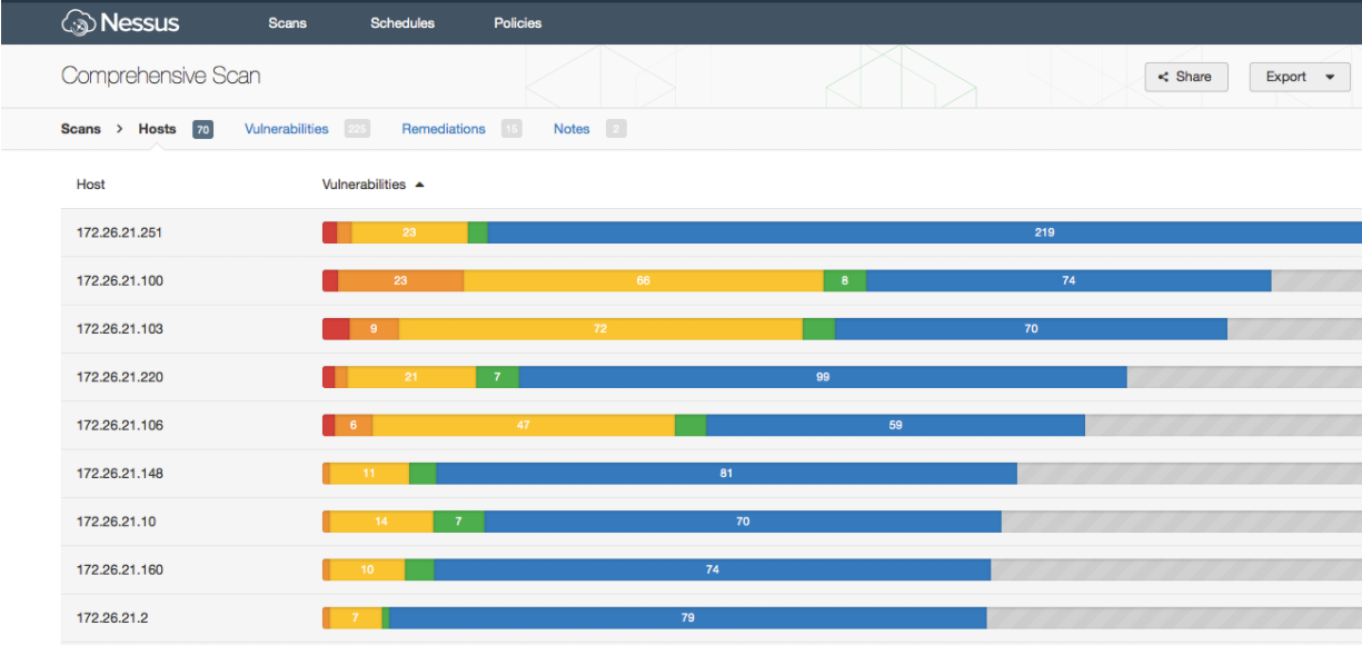 Sử dụng công cụ dò quét lỗ hổng Nessus của hãng tenable để dò quét các lỗ hổng còn tồn đọng trên hệ thống với các xếp hạng từ mức độ thấp đến cao dựa trên đánh giá chung của các chuyên gia toàn cầu.
