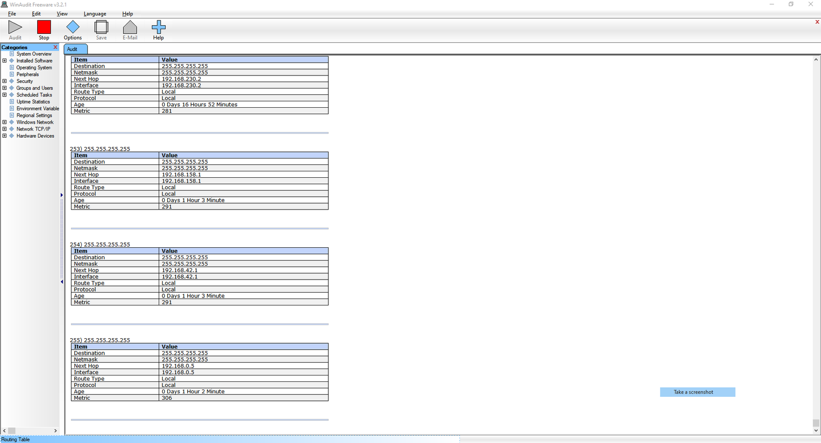 WinAudit is an inventory utility for Windows computers. It creates a comprehensive report on a machine's configuration, hardware and software. WinAudit is free, open source and can be used or distributed by anyone. It is used by IT experts in academia, government, industry as well as security conscious professionals in the armed services, defence contractors, electricity generators and police forces.