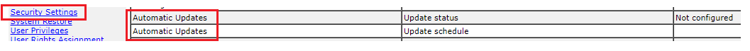 Từ thư mục kết quả, trong mục “Catagories”, tìm đến mục “Security Setting” tìm đến mục con “Automatic Update”. Đẩm bảo rằng chế độ cập nhật tự động được kích hoạt và thời gian kiểm tra các bản vá là 0 ngày. Tránh tình trạng không cấu hình hoặc ngắt chế độ tự động cập nhật theo tiêu chuẩn bảo mật CIS.
