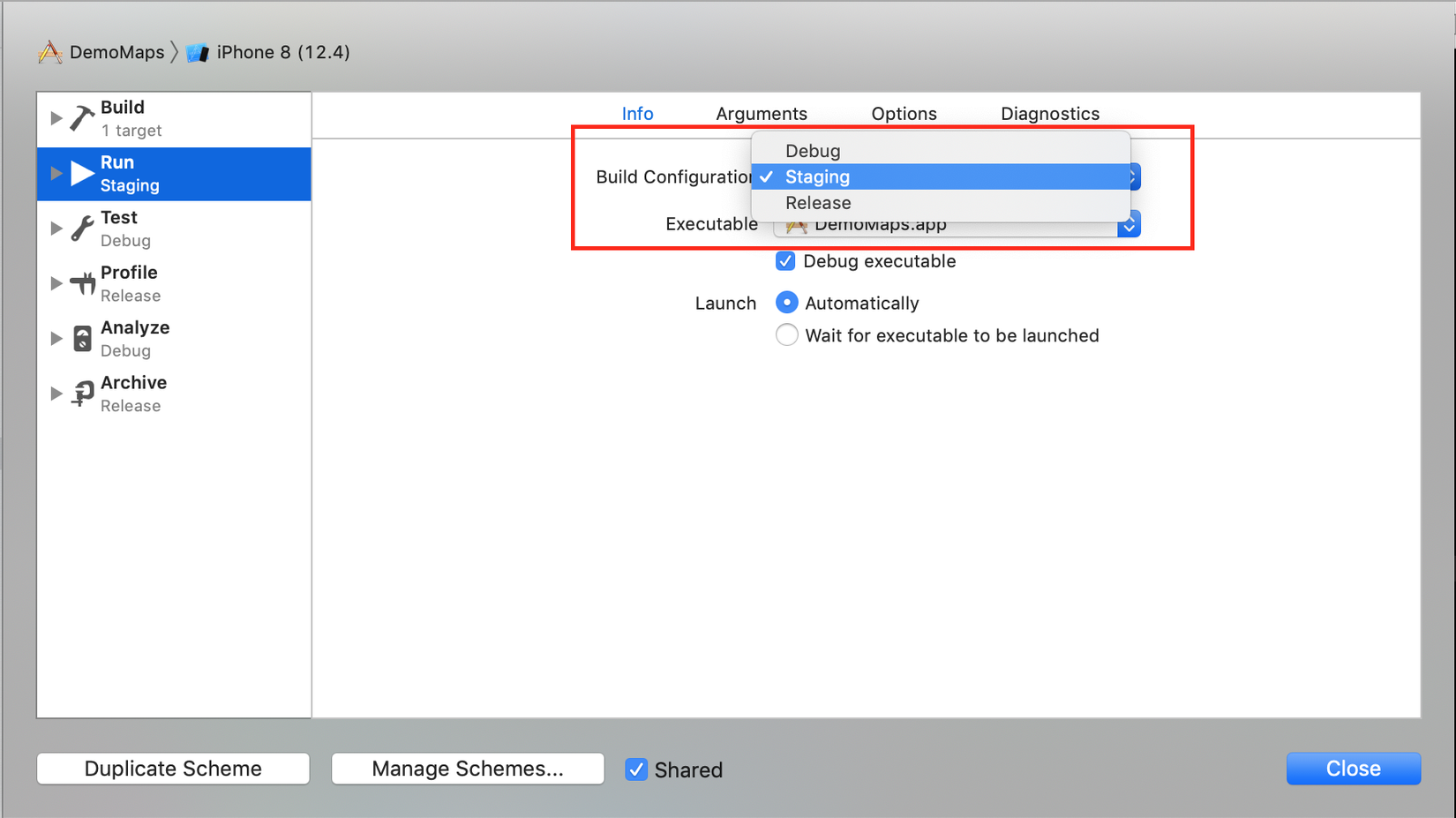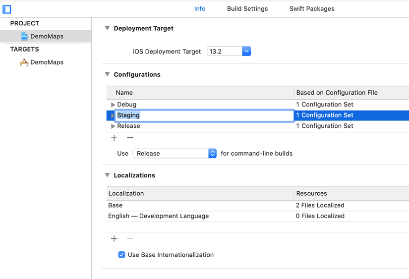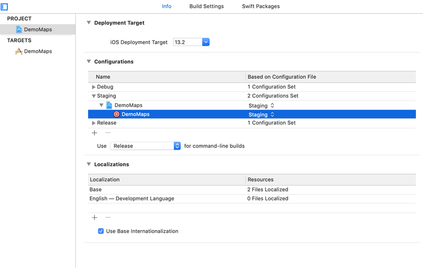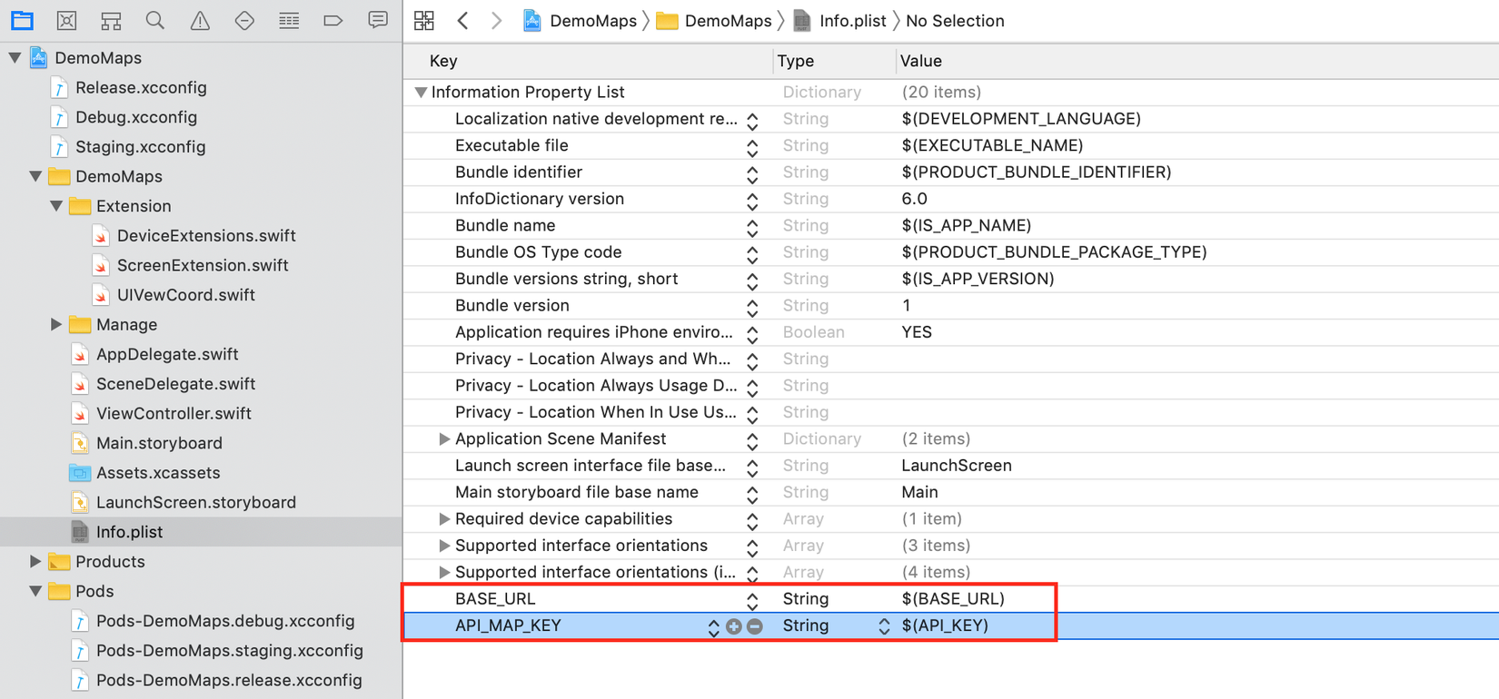 Info.plistkhác nhau. Khi build ở các môi trường khác nhau, một fileInfo.plistsẽ được sử dụng, do đó có thể phân biệt chúng như token, URL cho các bản build khác nhau.