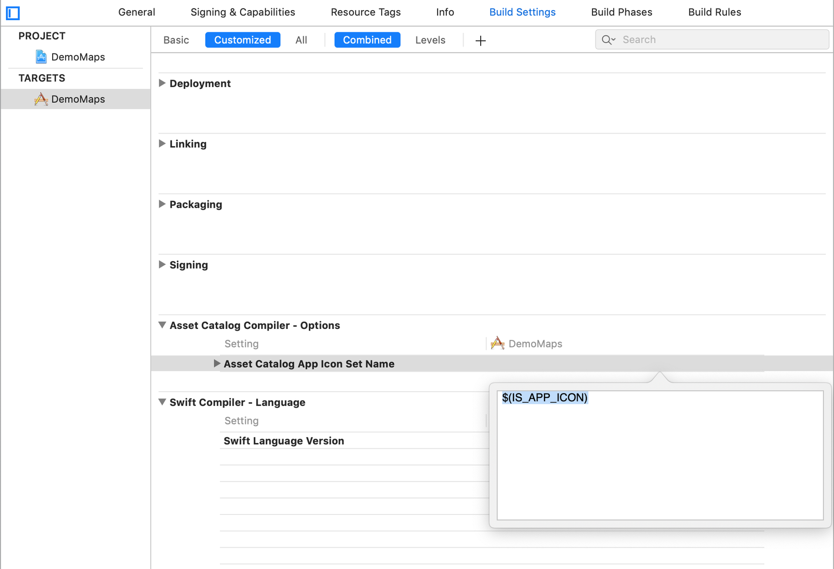 Sau khi thay đổi, ta thay đổi build setting và thay app icon với biến ${IS_APP_ICON}