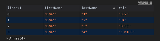 { firstName: 'Demo', lastName: '1', role: 'DEV' },